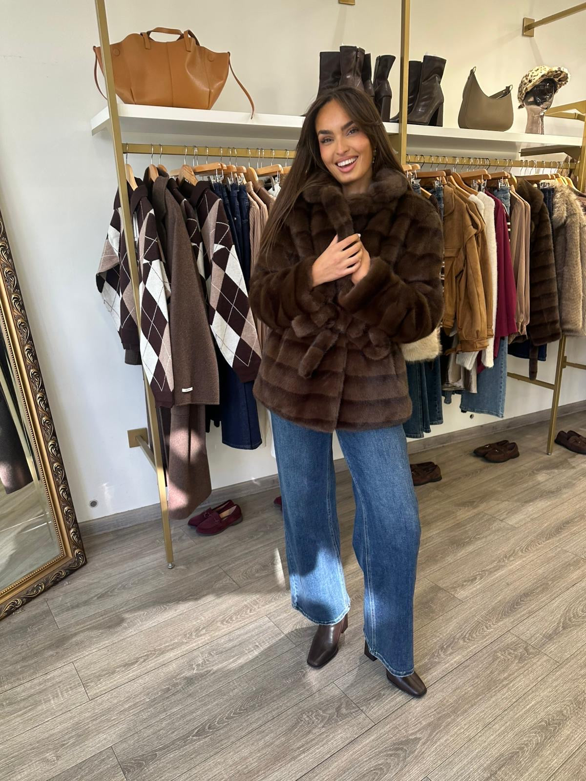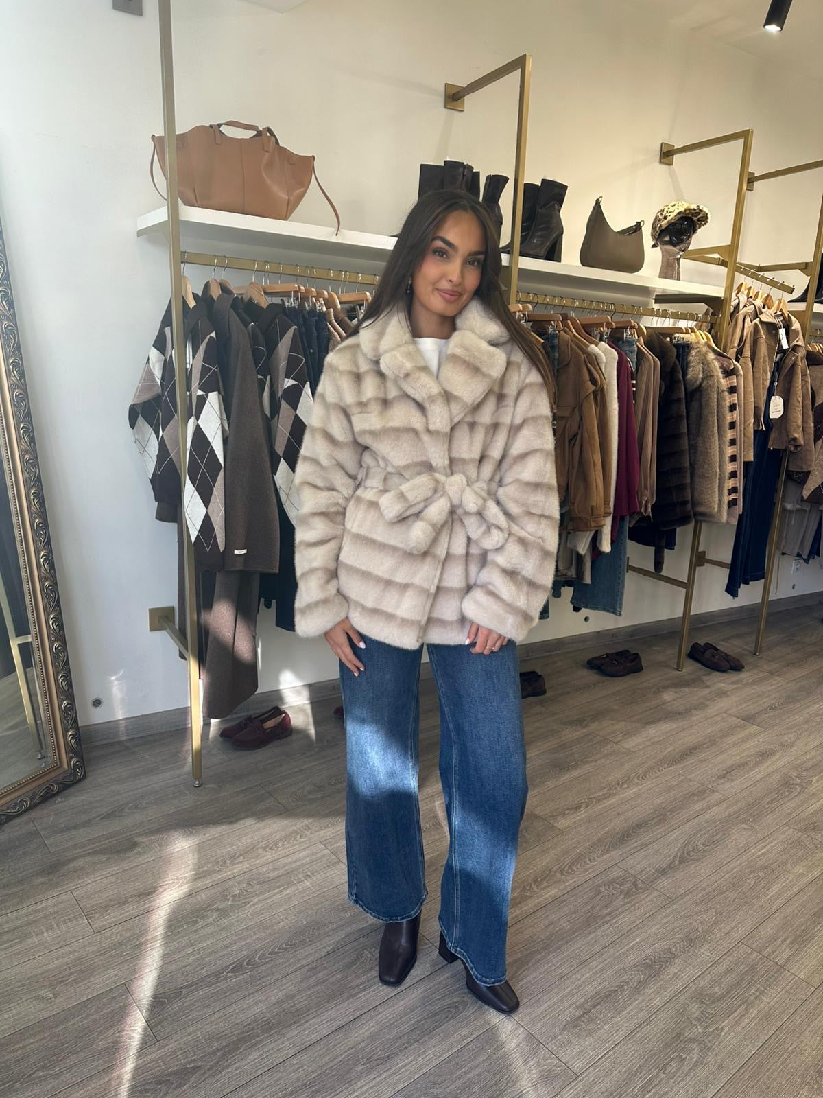 Manteau fourrure avec ceinture